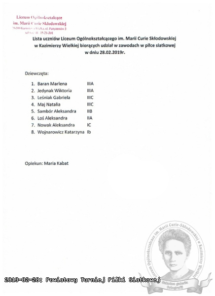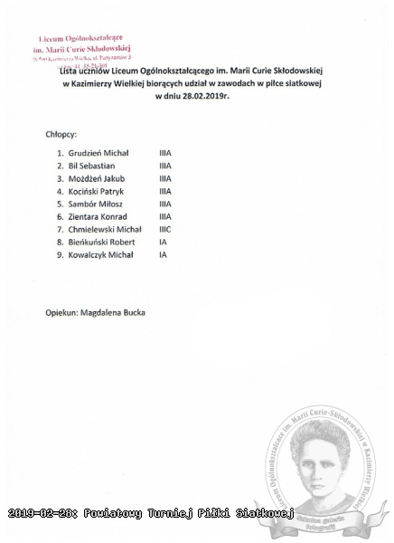 ©2003-2021 Liceum Ogólnokształcące im. Marii Curie-Skłodowskiej w Kazimierzy Wielkiej | Serwis prowadzi Andrzej Kocerba